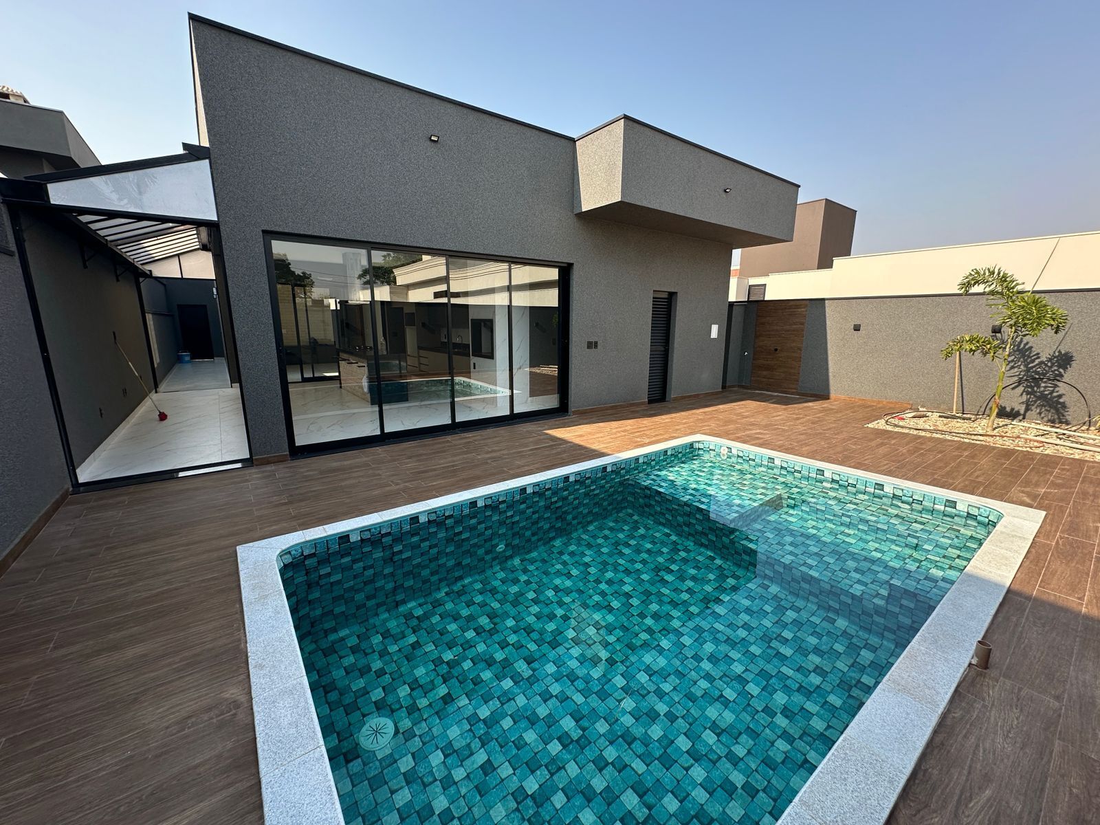 A área construída de 210m2 conta com churrasqueira, hidromassagem, piscina.